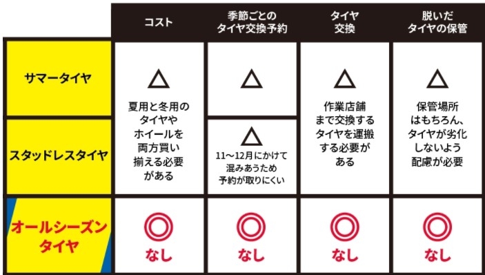 オールシーズンタイヤにするとこういった利点がでてきます!
