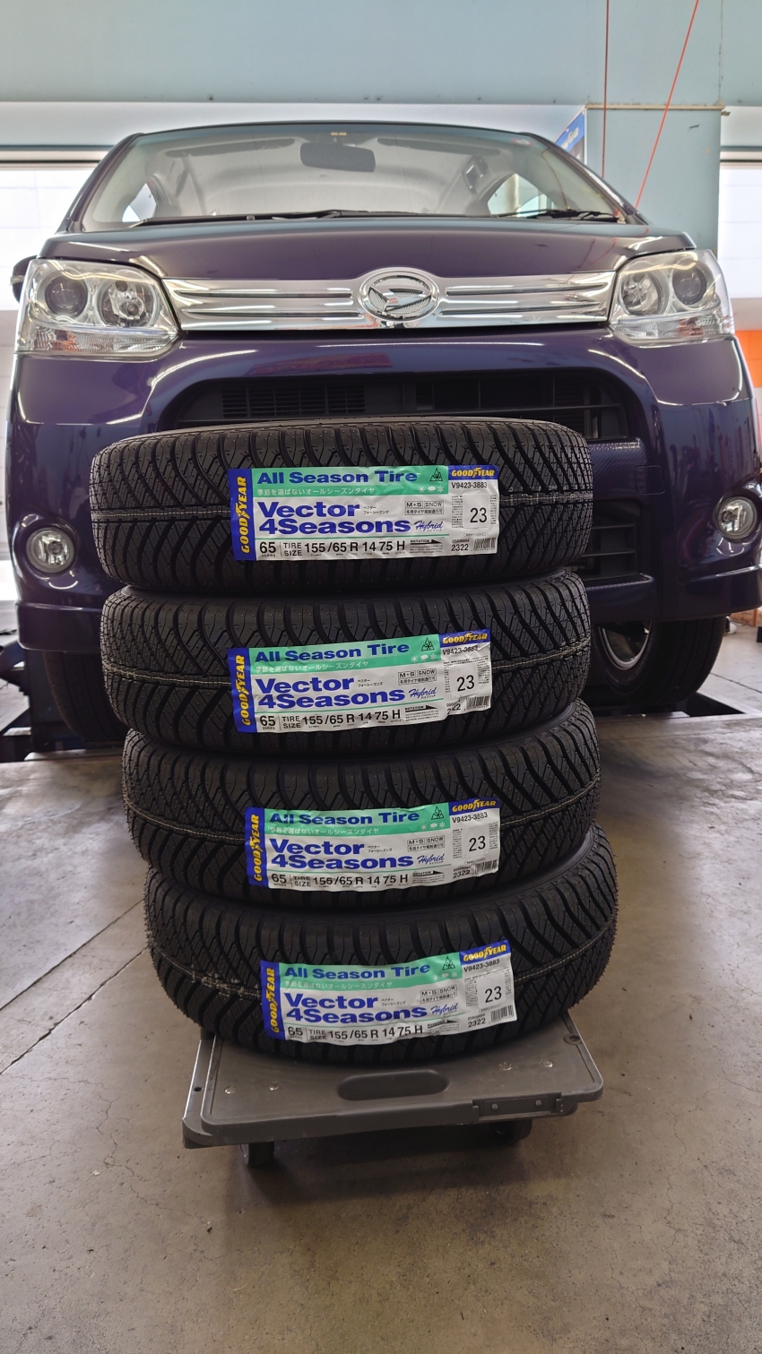 今度は、ムーヴにオールシーズンタイヤです。