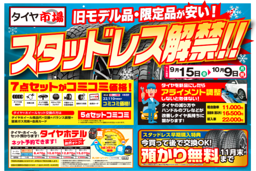 などなど新車のスタッドレスセットが大変お買い得になっておりますのでスタッドレスタイヤのご相談はタイヤ市場前橋駒形店まで( *´艸`)