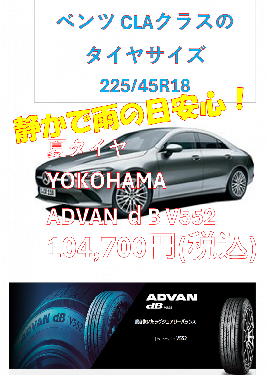 ベンツでタイヤをお探しの方!静かで雨の日も安心!!ADVAN dB V552 225/45R18