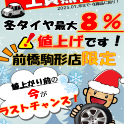 こんにちは!タイヤ市場前橋駒形店です!