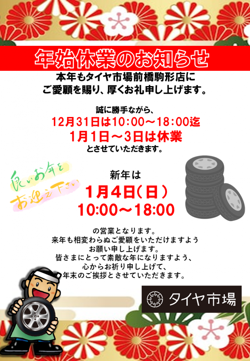 年末年始の営業日のご案内です!