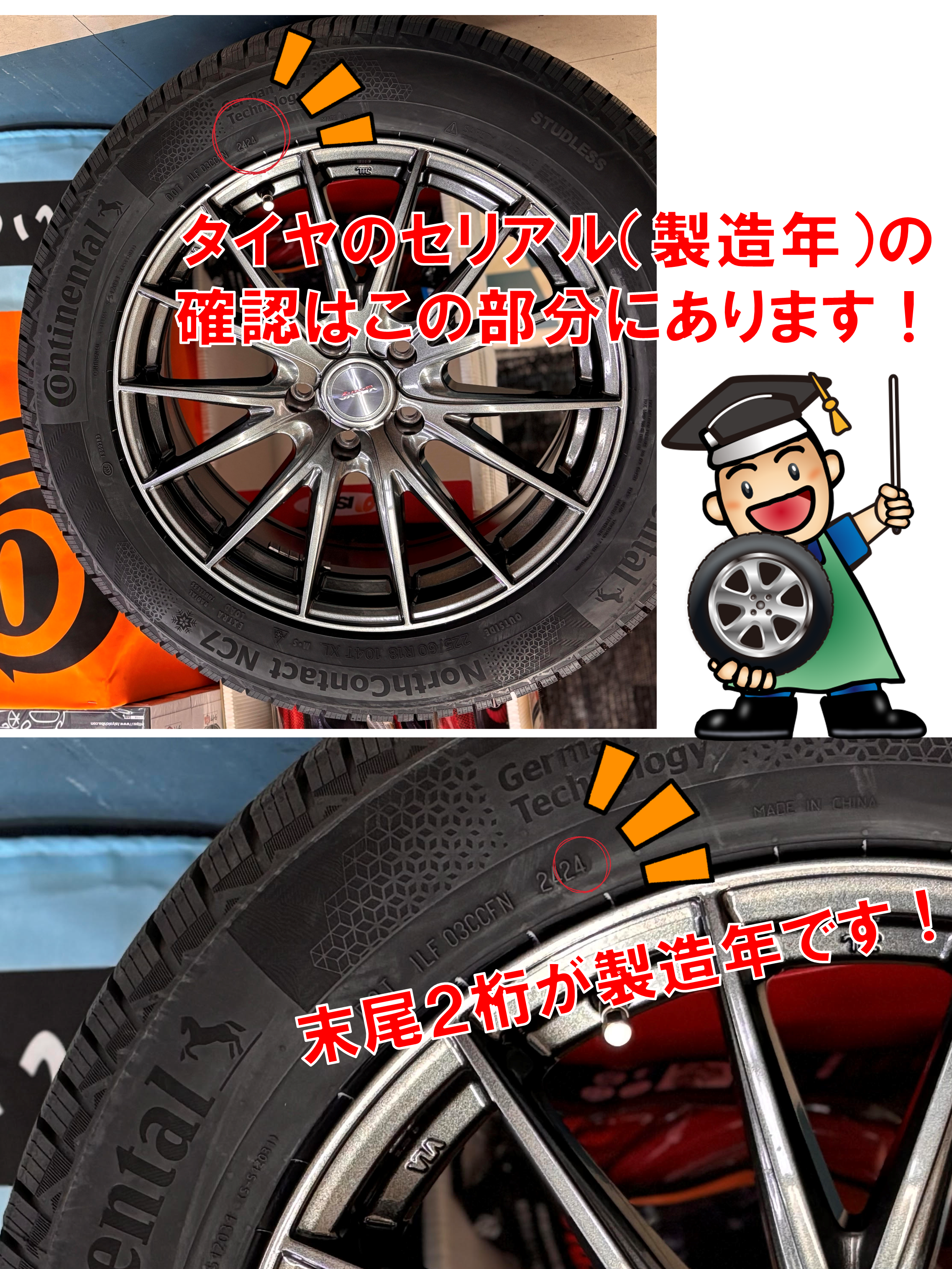 今一度履き替えの際や点検の際などにご自身のタイヤの年式をチェックしてみてください!