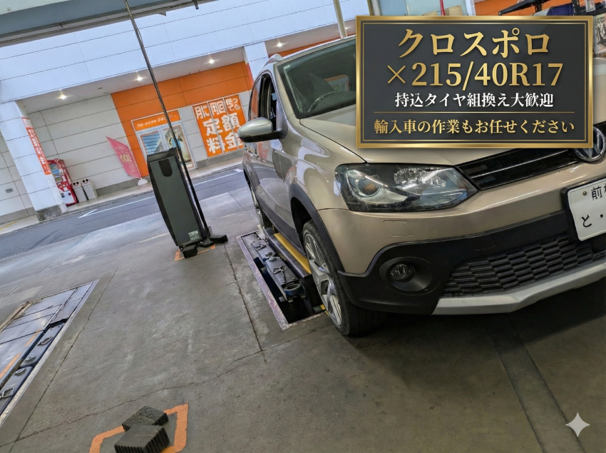 VWクロスポロのタイヤ交換!ネット購入・持ち込み215/40R17も大歓迎です!