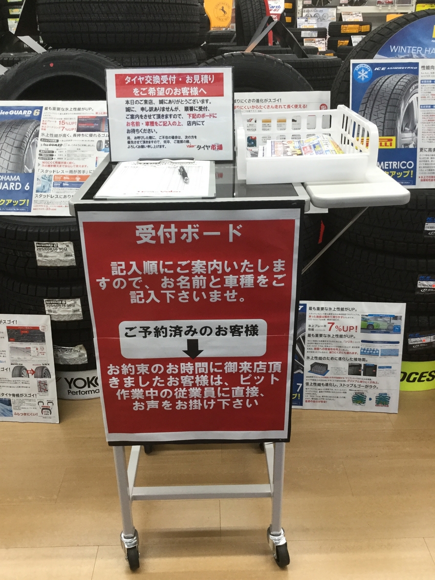 バロータイヤ市場正木店も、オープンから1カ月を超えましたが、いまだに、たくさんのお客様がいらっしゃいます。誠にありがとうございます!!しかし、お客様が集中する時間帯だと、お待ちいただく場合があり、受付ボードに名前が書かれていない場合、順番がわからなくなってしまう事がございます。そのため本日は受付ボードについて、お客様に御案内させていただきます。