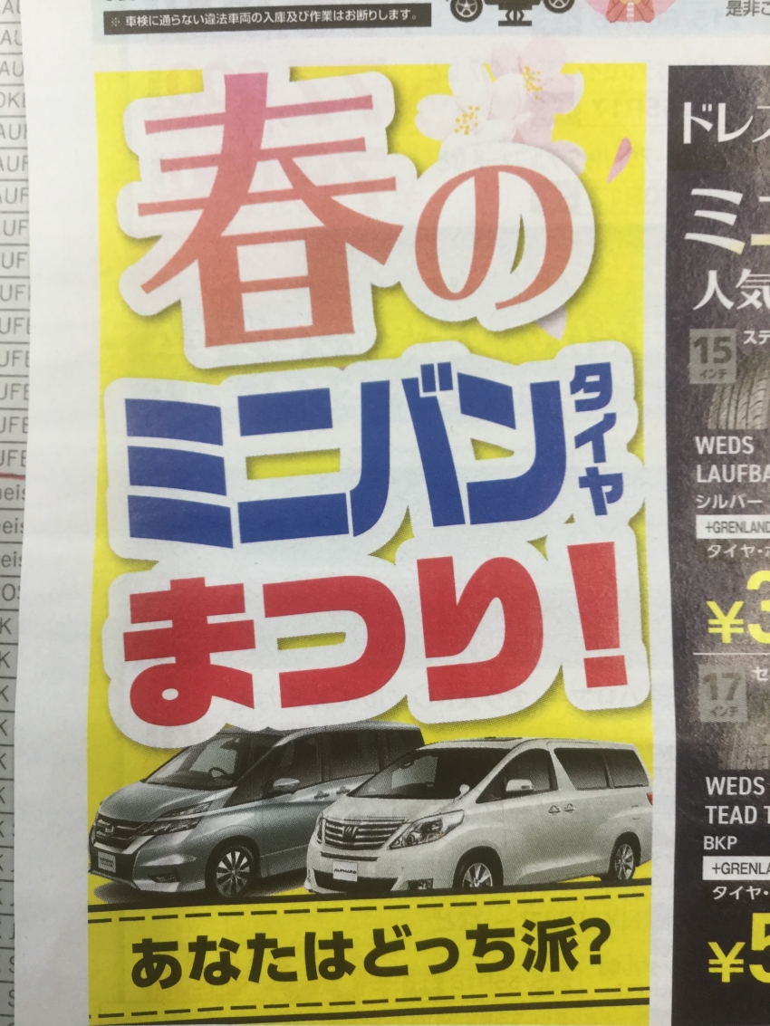 春のレジャー・GWへ向けてのお出かけミニバンタイヤ祭りと題して