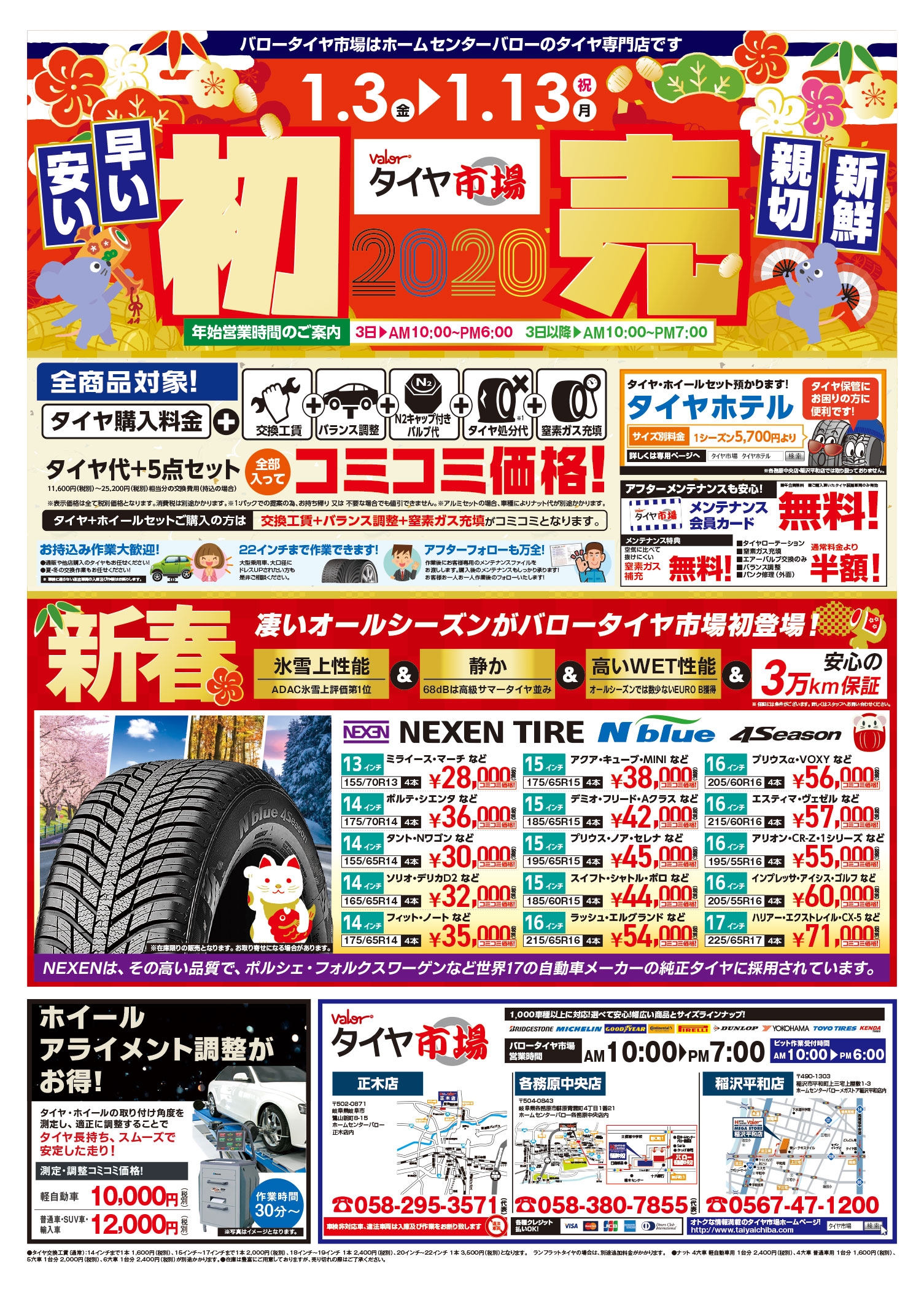 サマータイヤ スタッドレスタイヤ さらにはオールシーズンタイヤまで、種類を問わず、お正月価格にて販売させていただいております。まだ、スタッドレスタイヤをご購入されていないお客様。是非この機会に、交換されてみてはいかがでしょうか?