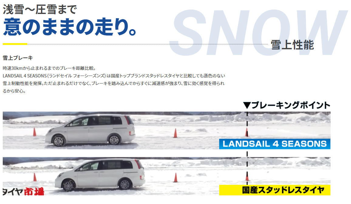 その中でおすすめなのが、タイヤ市場でしか購入できない、『LANDSAIL 4-SEASONS(ランドセイル フォーシーズンズ)』です!!