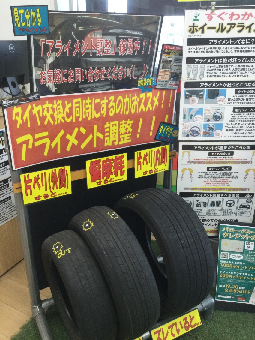 もし、お客様の中に、走行中のハンドルのズレや、タイヤの片べりが気になるお客様がいらっしゃるようでしたら、