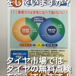 タイヤ市場では、いつでも無料でタイヤの点検を行っています