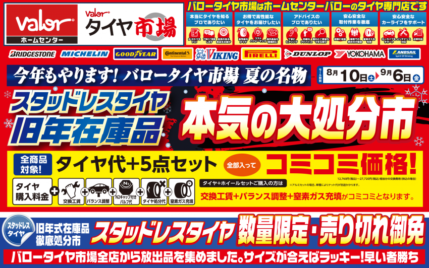 お知らせ 本日よりスタッドレスタイヤ旧年在庫品を限定価格で大放出致します!!