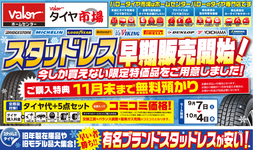 本日より、スタッドレスタイヤの早期販売を
