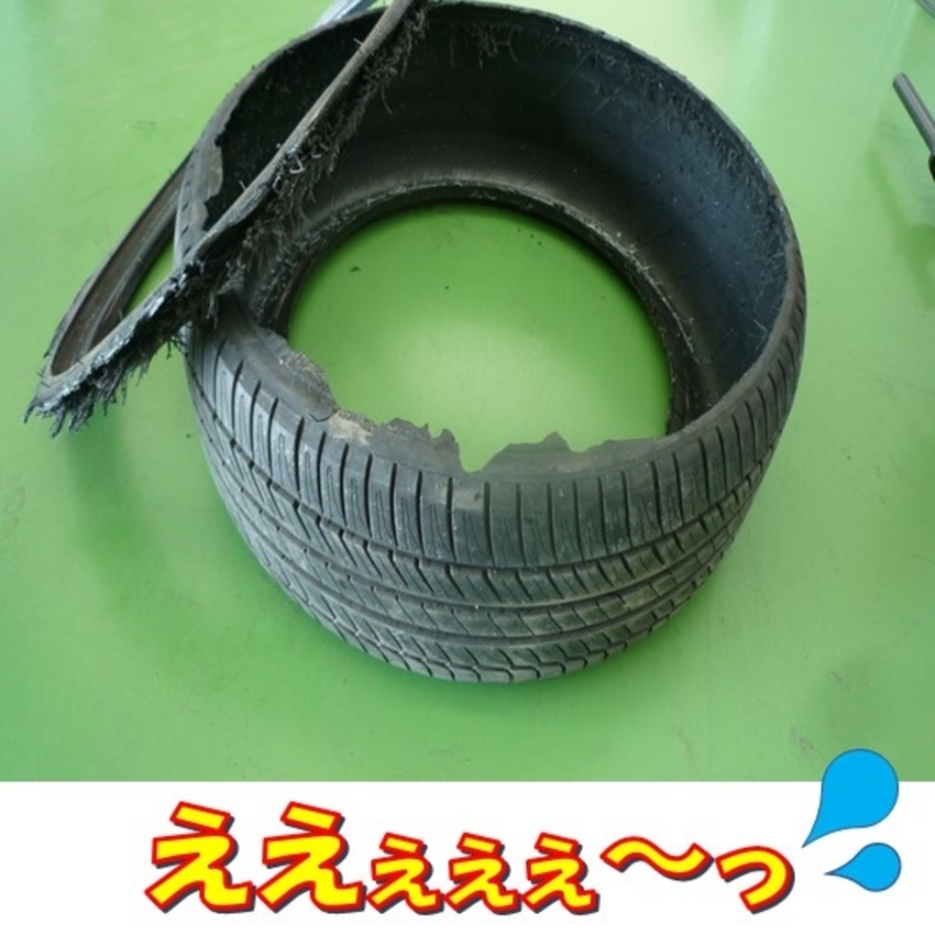 走行中にタイヤがこんな風にバーストしてしまうかもしれません。