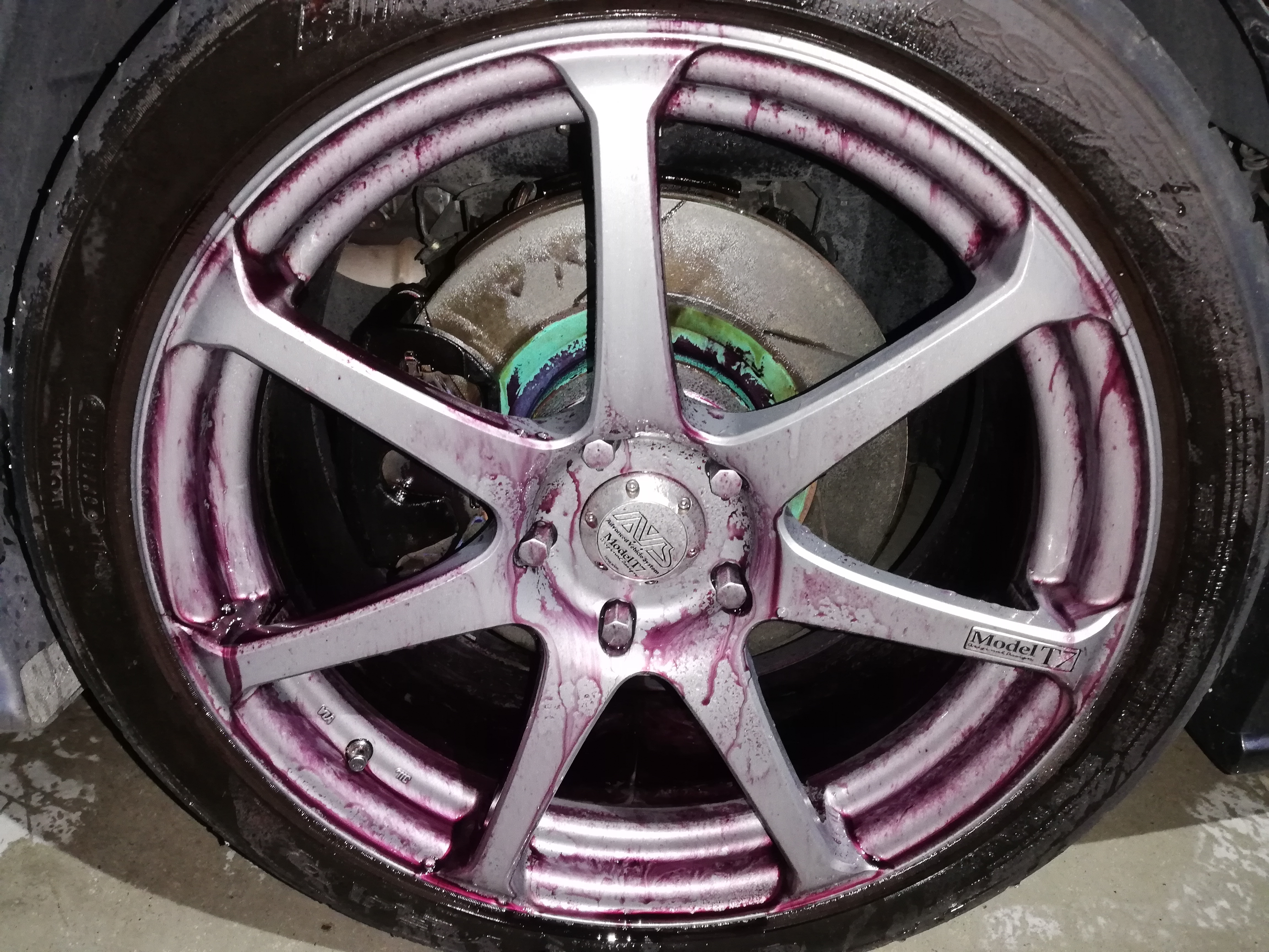 暗くて見えにくいですがホイール内側は紫色を通り越してドス黒かったです(笑