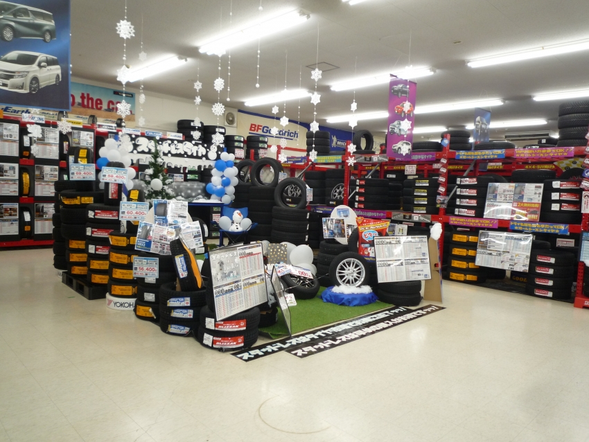 たくさんスタッドレスタイヤが入荷しましたので外も中もいっぱいです(笑