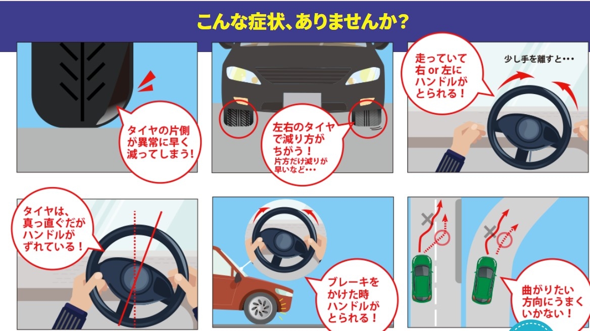 アライメントがズレているとこんな症状が出る場合も(;・∀・)