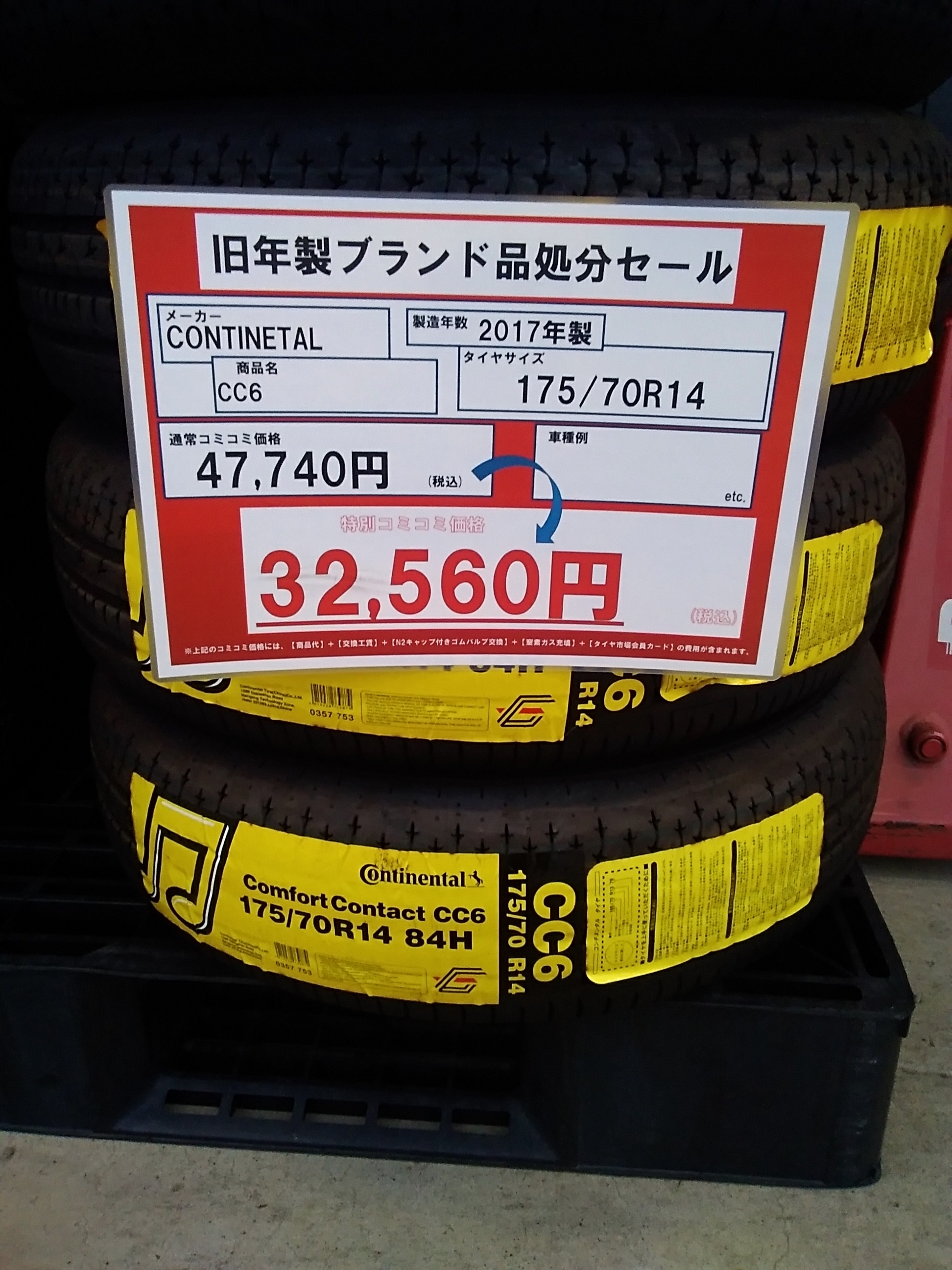 コンチネンタル 『CC6』 175/70R14が、通常コミコミ価格47.740円(税込)のところ