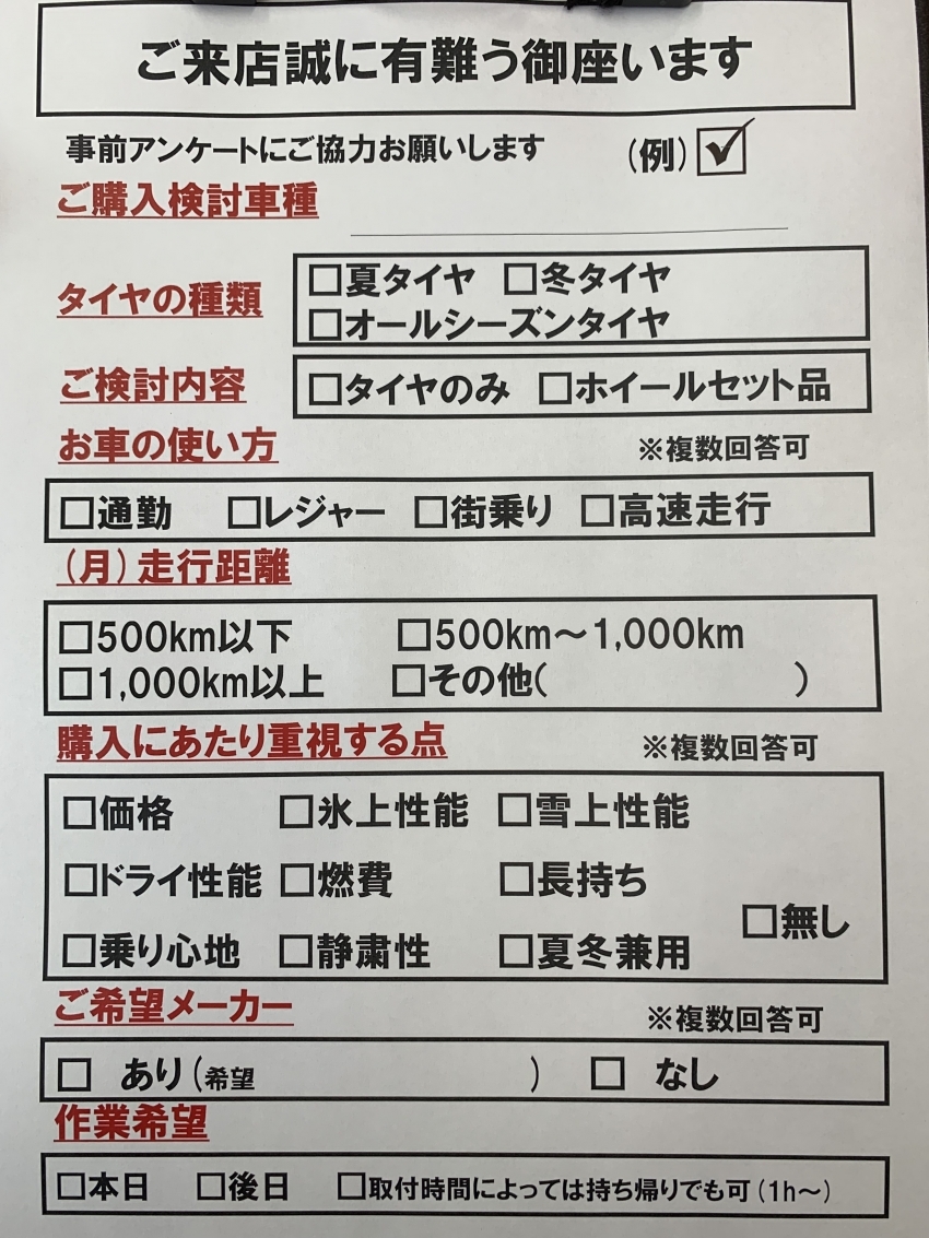 アンケートを事前に書いて頂けるとご案内時の対応がスムーズにできますのでこちらもご協力をお願いいたします!!