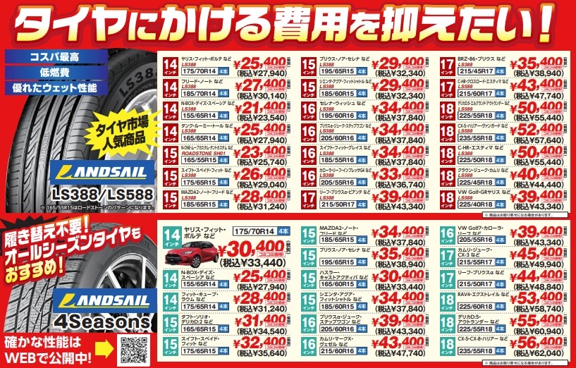 もちろん、当店専売品であるランドセイルの夏タイヤ、オールシーズンタイヤもご用意しております!!