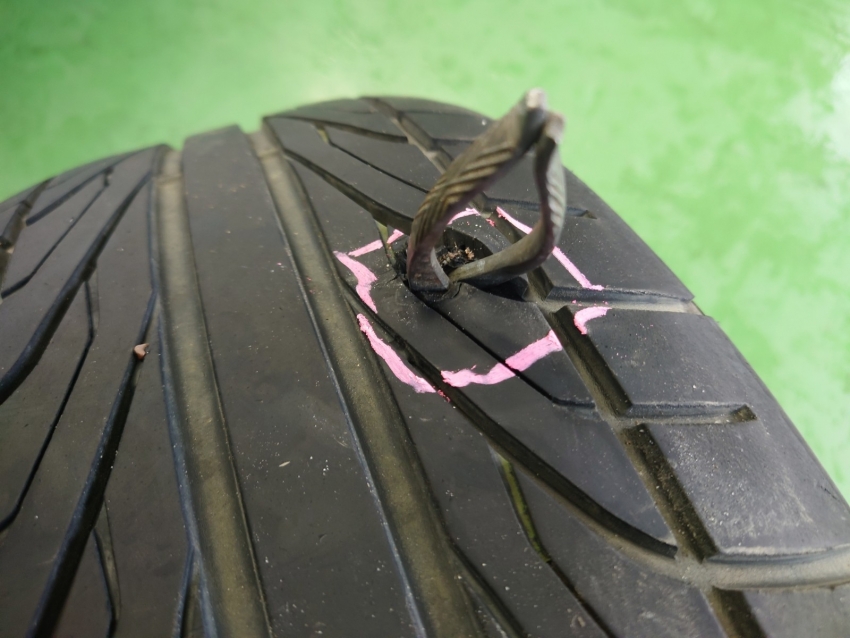 パンクしたとお問い合わせがありお客様にご来店して頂いたらびっくりするものが刺さっていました!