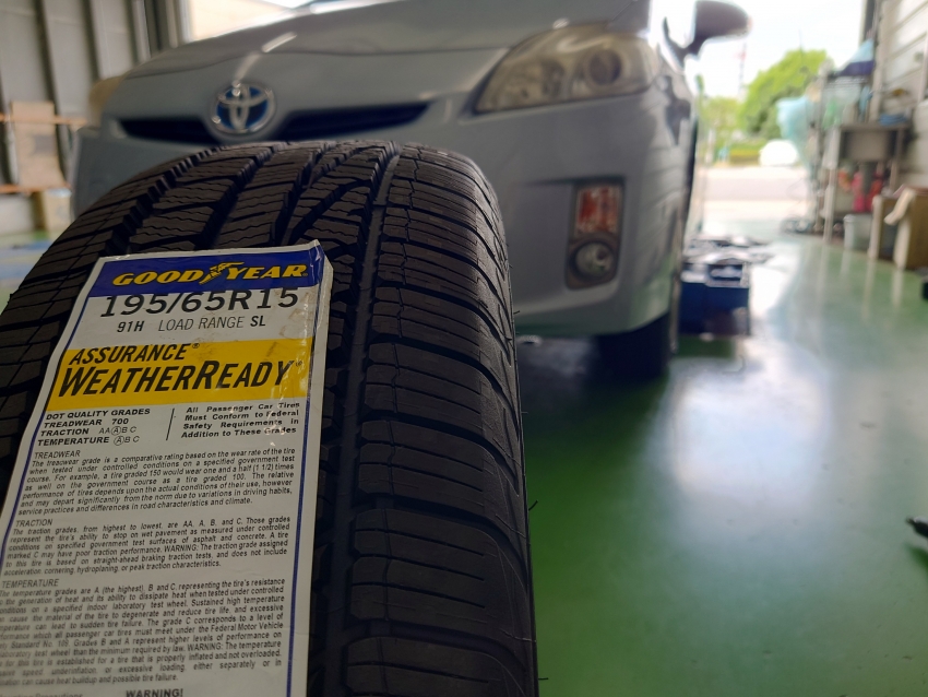 プリウスに高性能オールシーズンタイヤ、グッドイヤーのアシュアランス・ウェザーレディを組み込みました。