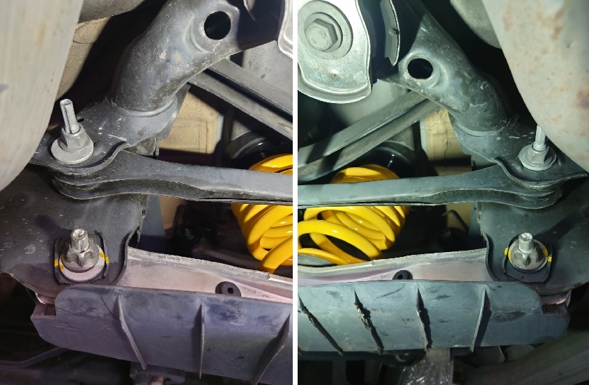 アウディは昔からリアキャンバーのカムがナックル側に付いており調整に難儀していたのですが