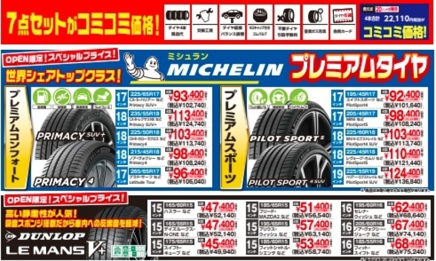 ダンロップLE MANS V+やミシュラン パイロットスポーツ5,プライマシー4を中心に安くなっております(^^♪