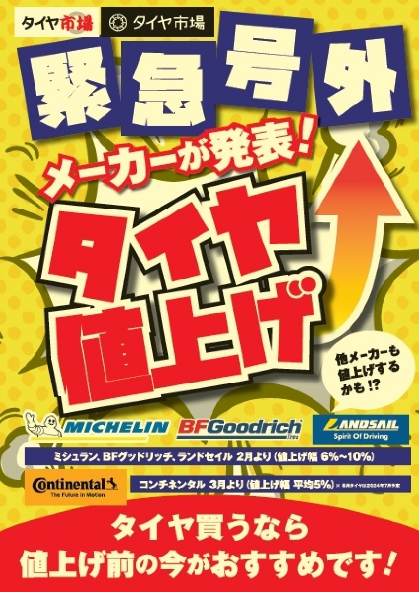 タイヤの値上げが発表されております。