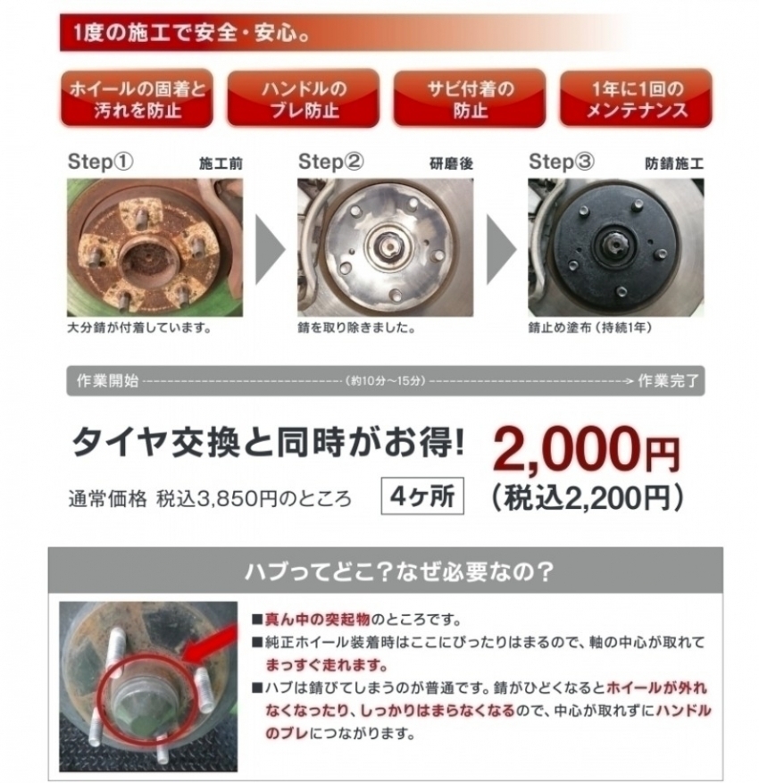 1回ハブ防錆をしている方であれば2回目以降はメンテナンスという形で