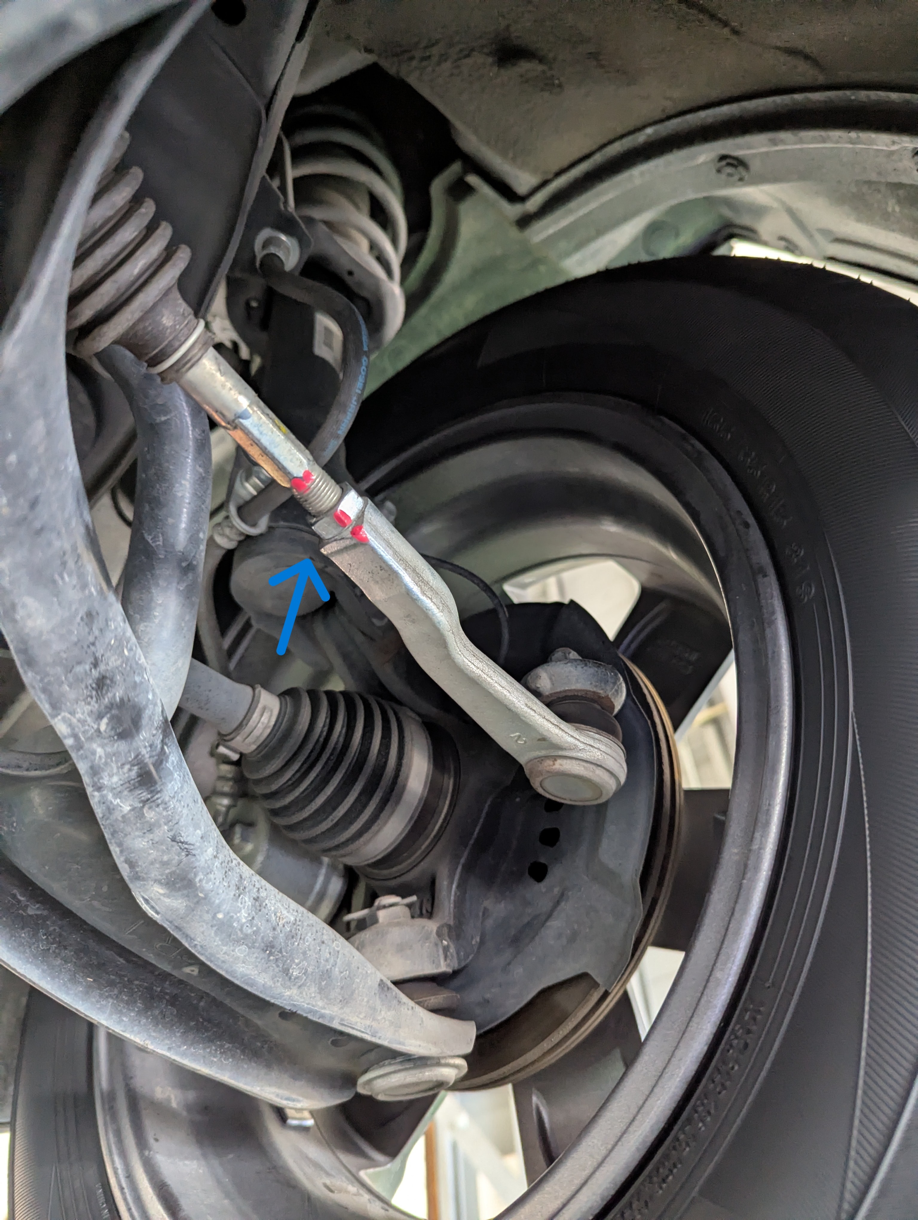 今回はハンドルが安定しやすいように少しトーイン(+0.1ミリ)にさせていただきました。