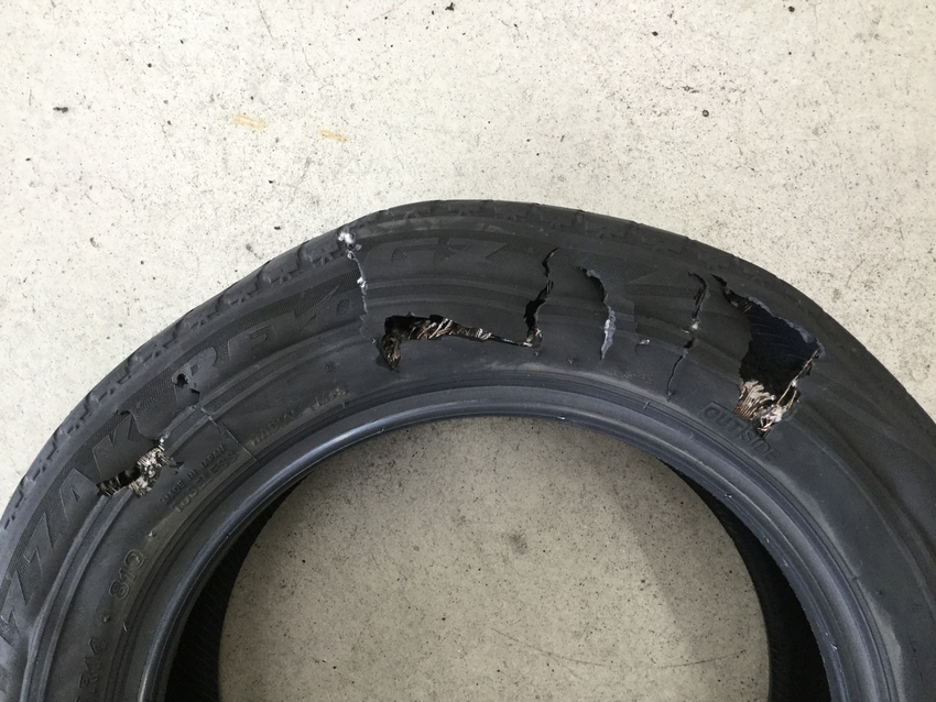 原因はタイヤの老朽化によるヒビ割れや亀裂 不適切な空気圧 過剰な積載によりおこります。