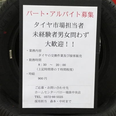 こんにちは。バロータイヤ市場 瑞浪中央店です。