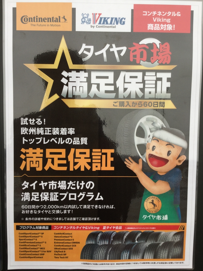 タイヤ市場では本日9/1より タイヤ市場だけの満足保証プログラム