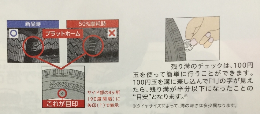 残り溝のチェックは100円玉を使う事で簡単にできます。