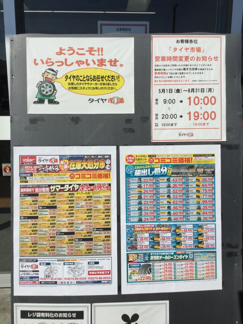 岐阜ではコロナ第2波で緊急宣言もでてしまいましたが、タイヤ市場は感染予防対策もしっかり行って、元気に営業致します!!