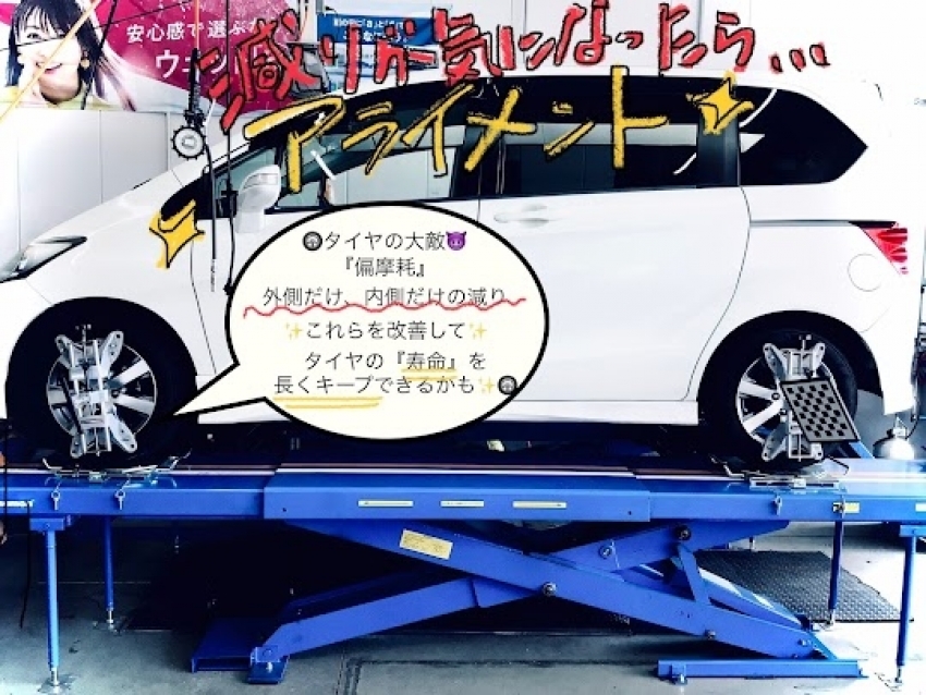 アライメント調整は大切です。車にも定期的な整体をしましょう!