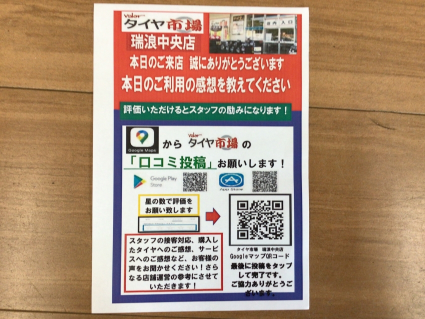 google mapsからタイヤ市場 瑞浪中央店の口コミにご協力をお願いします