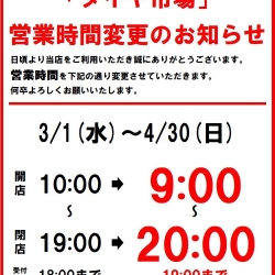 AM9:00~PM8:00(ピット作業受付:AM9:00~PM7:00)1月/2月/5月/6月/7月/8月/9月