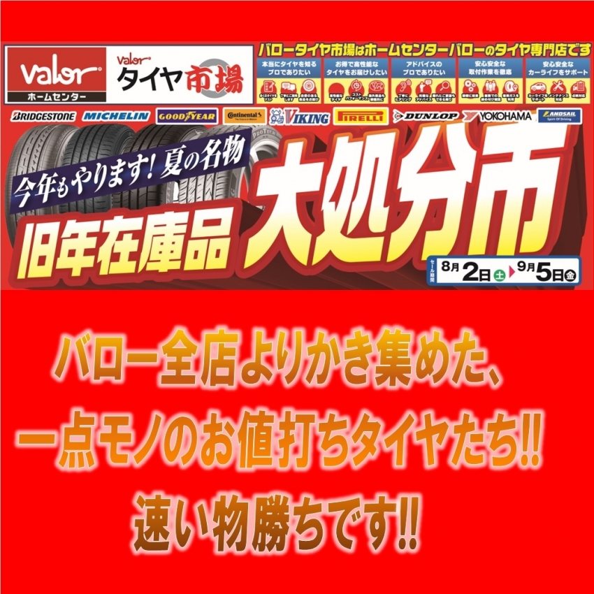 本日8月2日より、"旧年在庫品 大処分市" 開催です!!