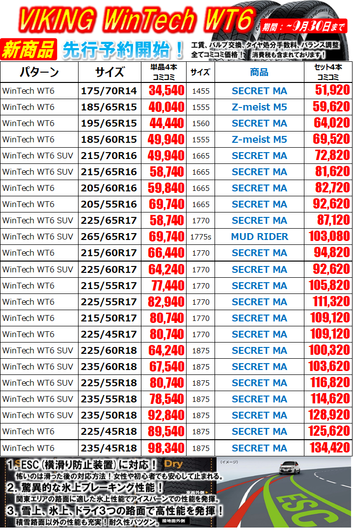 新車を購入されてスタッドレスをお持ちでない方、長年使用しており交換時期となってしまった方、
