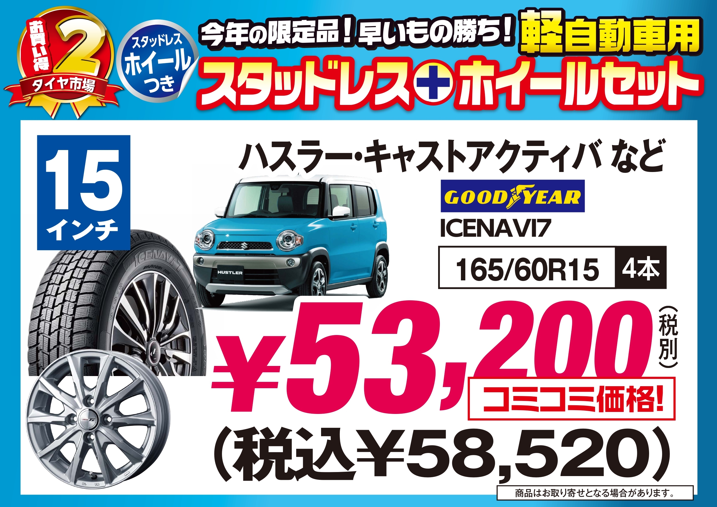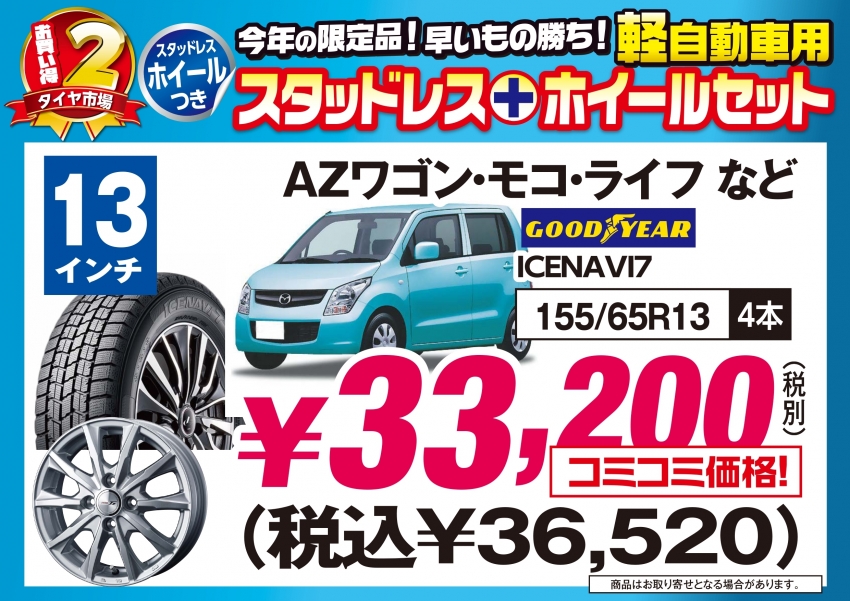 1008号用A3パネル_page-0005.jpg1008号用A3パネル_page-0007.jpg1008号用A3パネル_page-0006.jpgまずは、軽自動車用スタッドレスタイヤの特価品です!