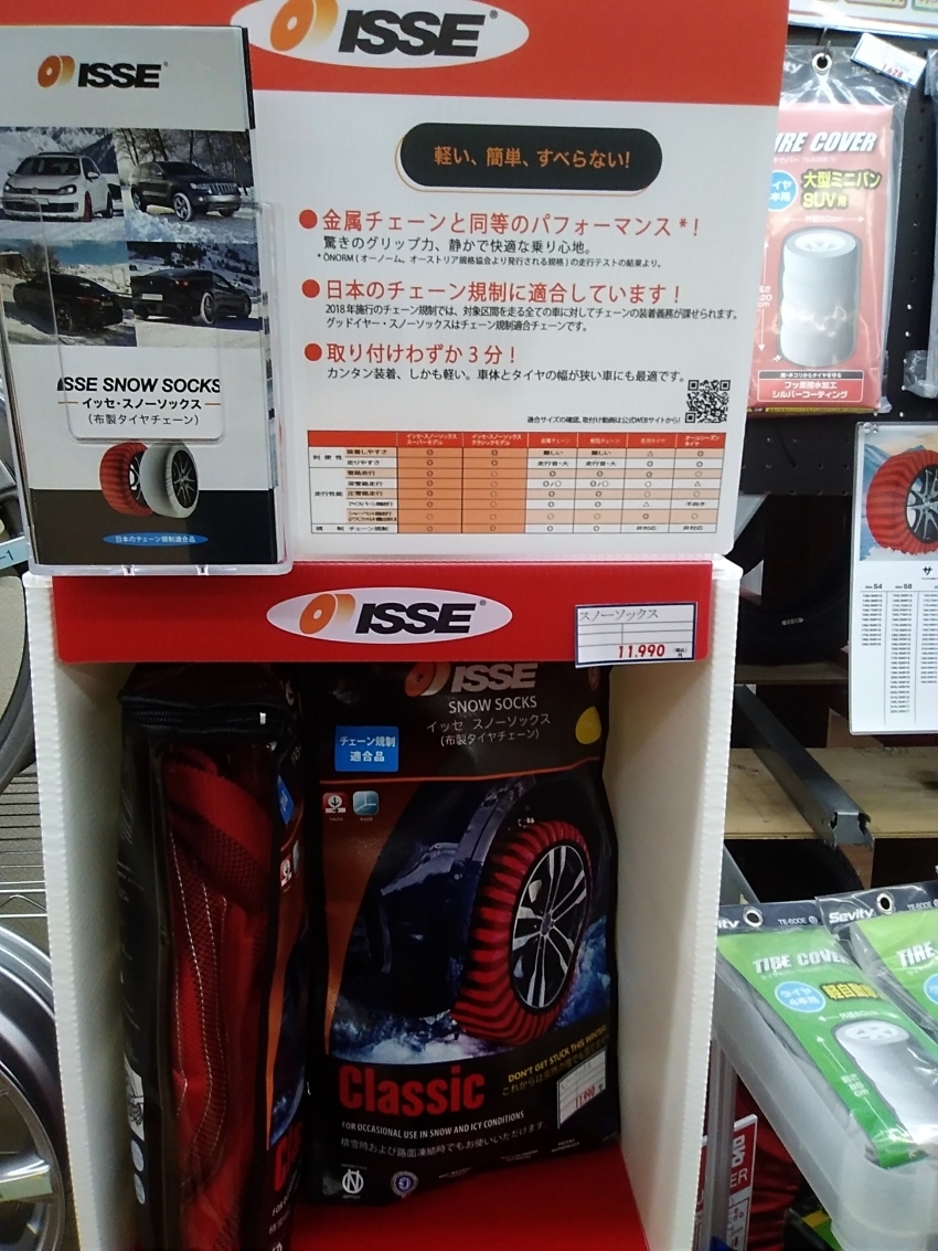 そんな時、車のトランクにイッセ.スノーソックスを忍ばせときませんか?