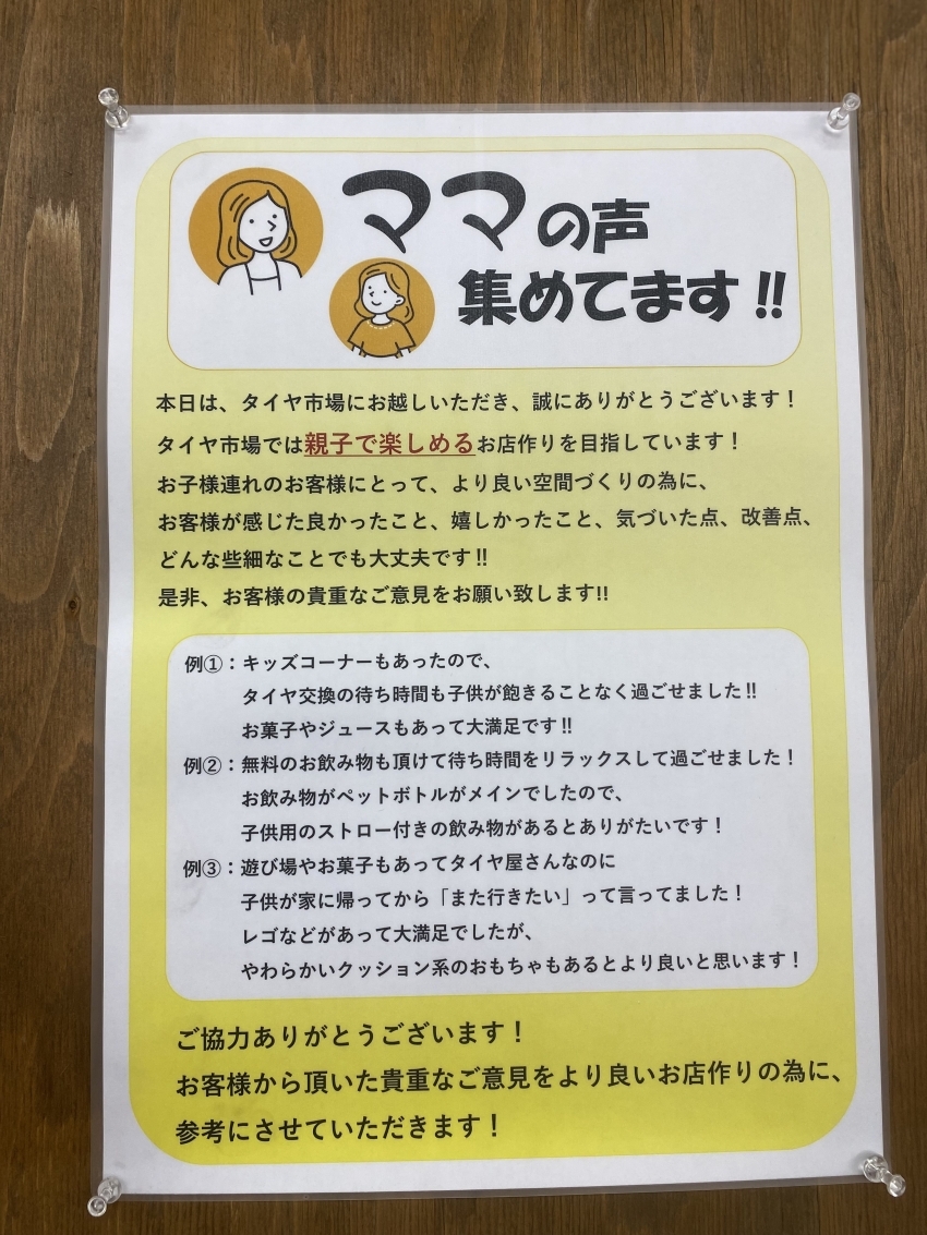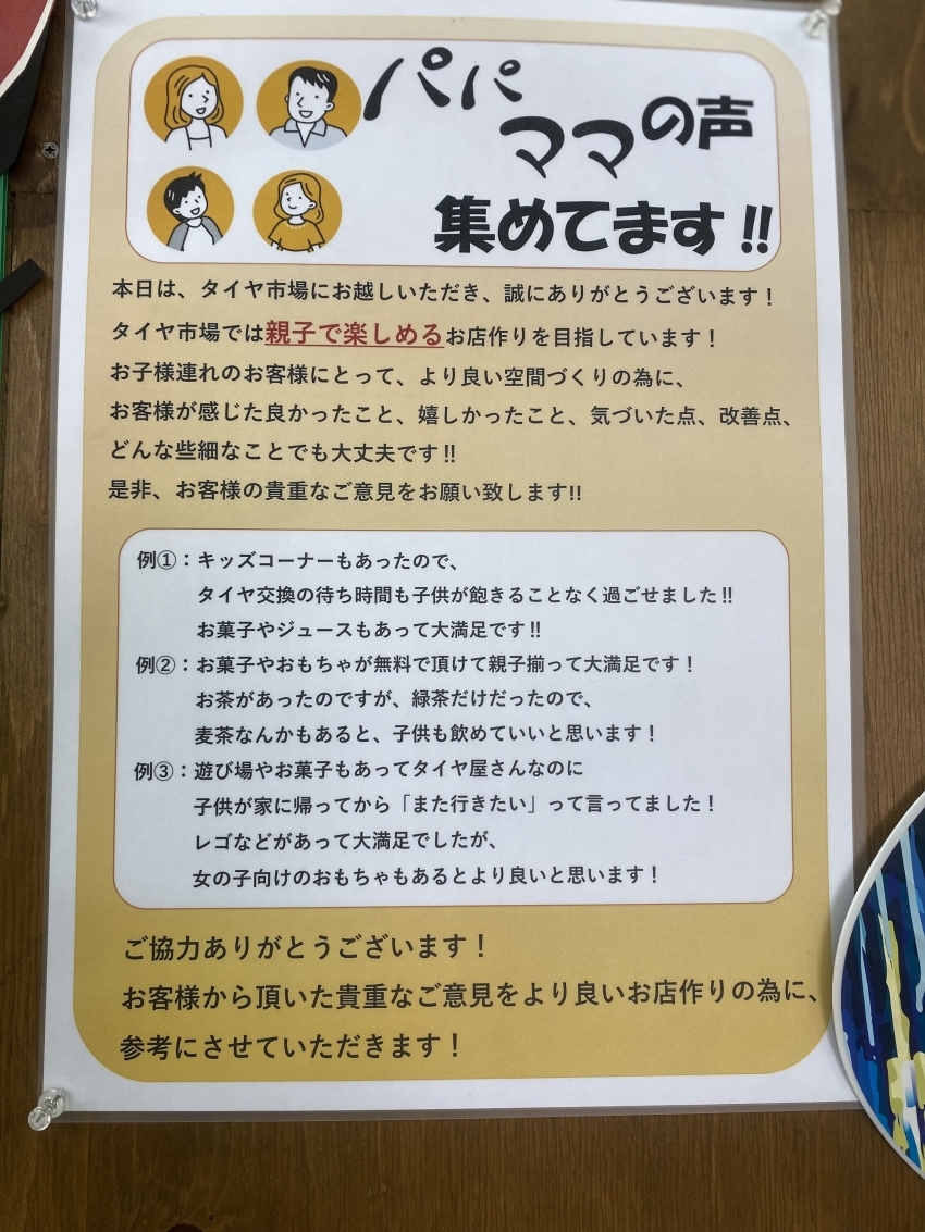 少しでもお子様がタイヤ交換の待ち時間を楽しんで頂けると