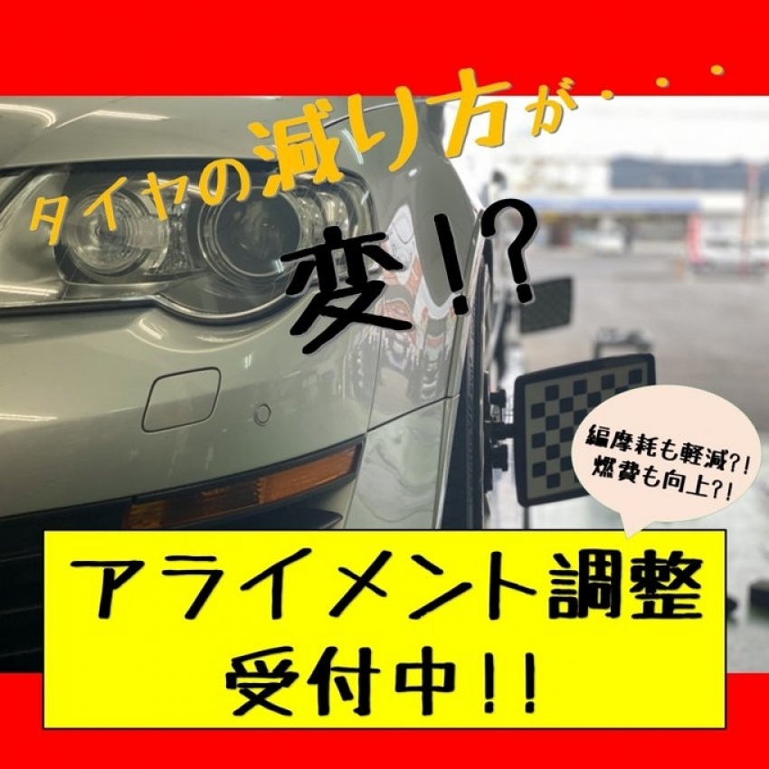 燃費改善!タイヤ長持ち!アライメント調整!予約受付中^^!!