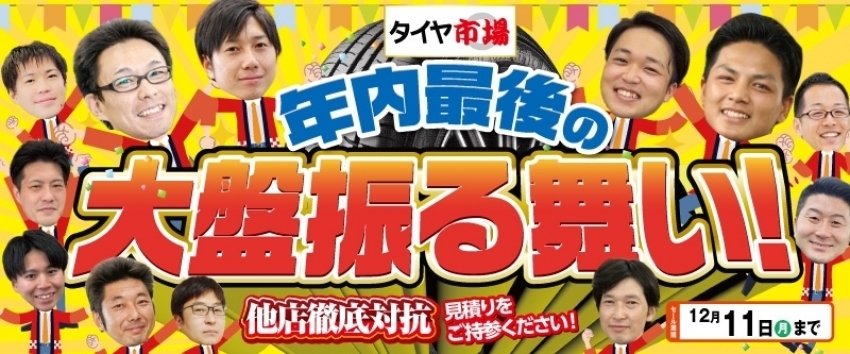 12/11まで!今年最後のチラシ!!他店徹底対抗致します!!サマー・スタッドレス・オールシーズンタイヤ・ホイール買うならタイヤ市場佐野店へ!!