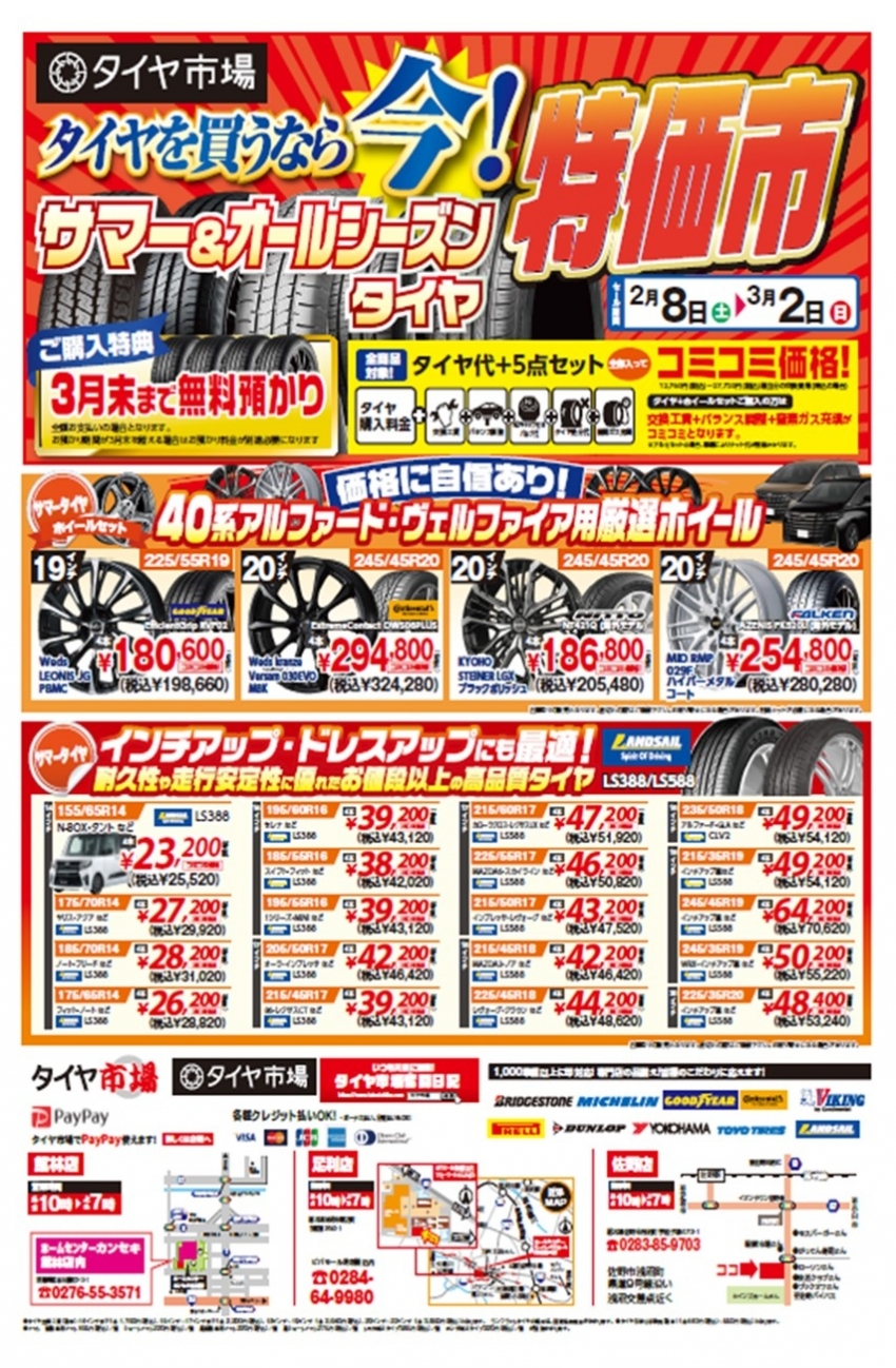 【夏・オールシーズンが安い!】特価市!! タイヤを買うなら今がチャンス!