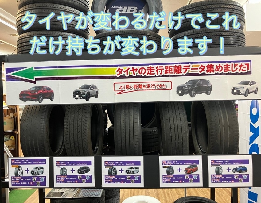 タイヤの種類が変わるだけでこれだけ持ちが変わります!