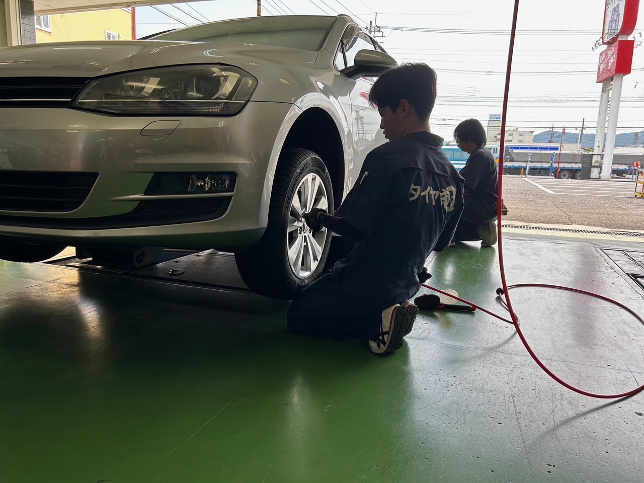 でのタイヤ交換作業