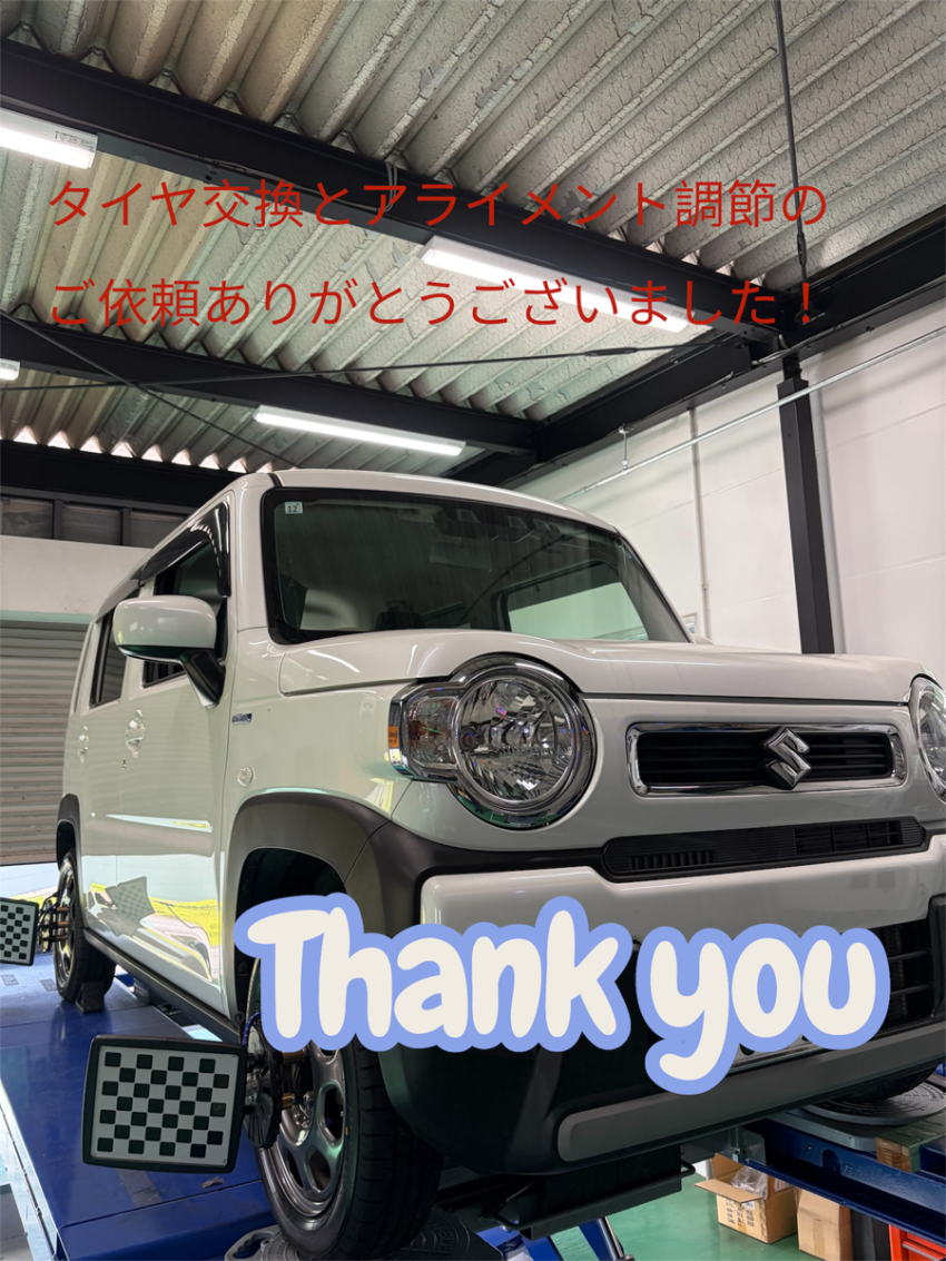 スズキ:ハスラーのオーナー様よりタイヤ交換とアライメント調節のご依頼頂きました!!