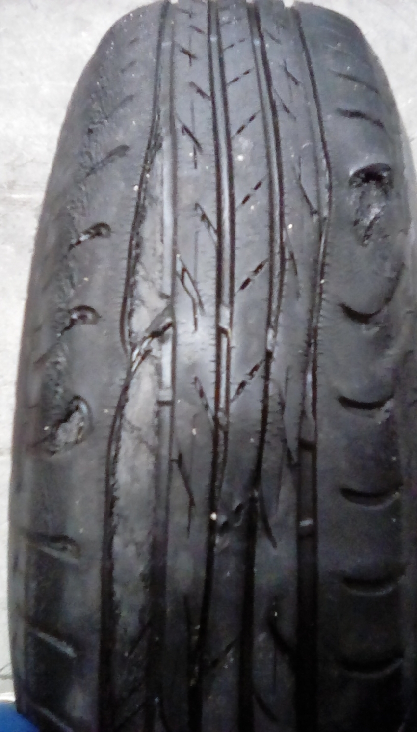 写真の手前部分のタイヤがぱっくり割れてますよね?